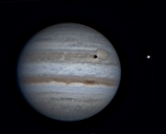 這張動畫顯示出木衛的移動,木星上的黑點是木衛IO的影子,本體就是右方的亮點!
